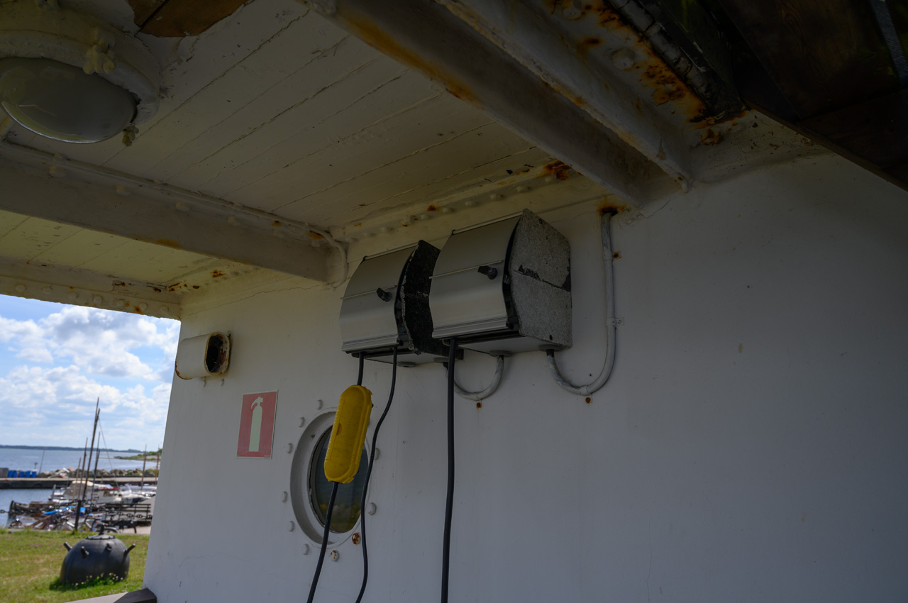 - Die Stromversorgung befindet sich am Hafenmeistergebäude an der Wand. Es gibt 6A Absicherung und 10A Absicherung. Man braucht je nach Stellfläche unter Umständen viel Kabel. Die Anschlüsse sind in CEE-Ausführung.