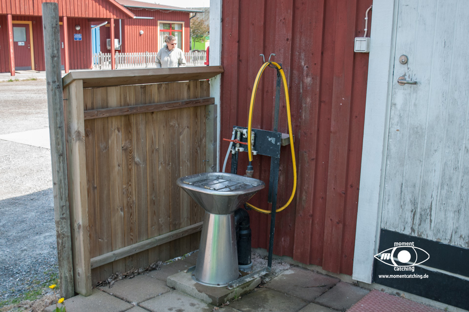 - Die Sanitärräume und die V+E befinden sich hinter der Gaststätte am Einfahrtsbereich.