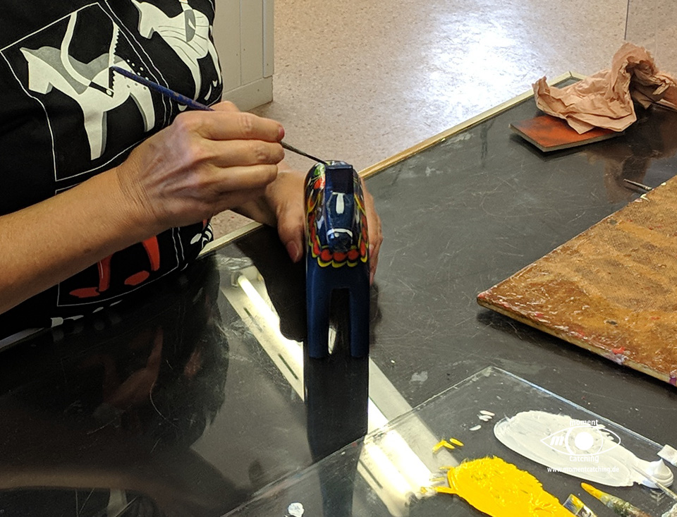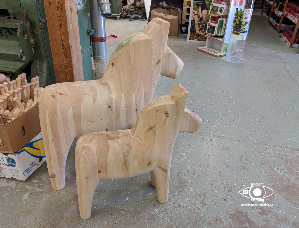 Nusnäs ist ein kleiner Ort am Siljansee. Hier sind die traditionsreichen Fabriken der Dalapferdhersteller. Für Touristen ist das schwedische Nationaltier der Elch. Die Einheimischen bevorzugen das Pferd – eines aus Holz, hergestellt in Nusnäs. Bill Clinton hat einen, Elvis Presley hatte einen, Frank Sinatra und Yassir Arafat auch. Die Rede ist von einem Dalahäst, einem Pferd aus Dalarna. Nein, kein lebendiges Pferd. Es ist aus Holz, rot oder blau bemalt und reich verziert. Mehr noch: Dalapferde sind eines der schwedischen Nationalsymbole, und deswegen erhält Lasse Olsson auch des öfteren Bestellungen der Regierung – die Holztierchen sind das ideale Geschenk für Staatsgäste. Lasse Olsson gehört die „Dalapferdefabrik“ in Nusnäs in der Provinz Dalarna. Er ist der Sohn von Jannes Olsson, dem Erfinder der Holzpferde. 1928 hat dieser zusammen mit seinem Bruder Nils sein erstes Holzpferd geschnitzt. Gerade erst 15 und 13 Jahre alt waren die beiden damals, und doch schon die ersten professionellen schwedischen Holzpferdehersteller. „Anderes gab es damals auf dem Land auch nicht zu tun“, stellt Lasse Olsson trocken fest. Auch heute ist die Herstellung eines Dalahästs noch Handwerk, allerdings wird ein Pferd nicht mehr nur von einer Person hergestellt, sondern es muss eine ganze Reihe von Arbeitsschritten durchlaufen, bevor es fertig ist. Zuerst werden die Umrisse der Pferdefiguren auf Holzblöcke aufgestempelt, dann mit der Stichsäge ausgesägt. Erst wenn die Grobform festgelegt ist, kommt das Schnitzermesser zum Einsatz. Diese Feinarbeit erledigen „für uns ungefähr 50 Rentner in Heimarbeit“, sagt Olsson. Dalapferdschnitzer sind in der Region angesehene Leute, und in manchen Familien wird der Beruf von Generation zu Generation weitervererbt. Anders als sonst, übernehmen hier aber nicht die Jungen das Geschäft, sondern die Alten. Erst wer aus dem Berufsleben ausgeschieden ist, wird Pferdeschnitzer. Homepage mit Öffnungszeiten und Eintrittsinformationen. |