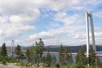 Auf einem Berg südlich von Ramvik gibt es eine abgeschaltete Sendeanlagen mit einem hohen Sendemast und verfallenen Gebäuderesten. Von hier oben hat man eine gute Aussicht auf den Angermanälven und die moderne, gigantische Högakustenbron. Die 1997 eröffnete Brücke ist eine Straßenbrücke für die Europastraße E4 und das zweithöchste Bauwerk Schwedens. Die maximale Stützweite der Brücke beträgt 1.210 m und ist damit fast ebenso lang wie die der Golden Gate Bridge (1.280 m). Ihre lichte Höhe beläuft sich auf 40 m, die Gesamthöhe auf 186 m bei einer Gesamtlänge von 1.867 m. Die Brücke ist 17,8 m breit. Homepage mit Öffnungszeiten und Eintrittsinformationen. |