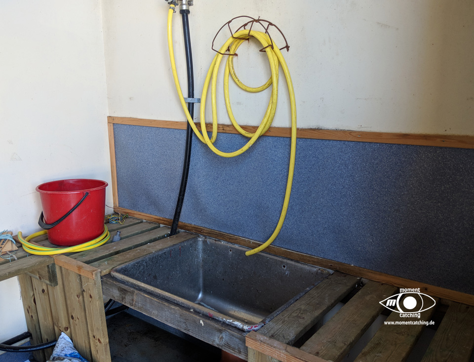 - Duschen und Toiletten und ein kleiner Aufenthaltsraum befinden sich in dem Gebäude in dem auch der Hafenmeister ist. Hier bezahlt man auch die Standgebühren.