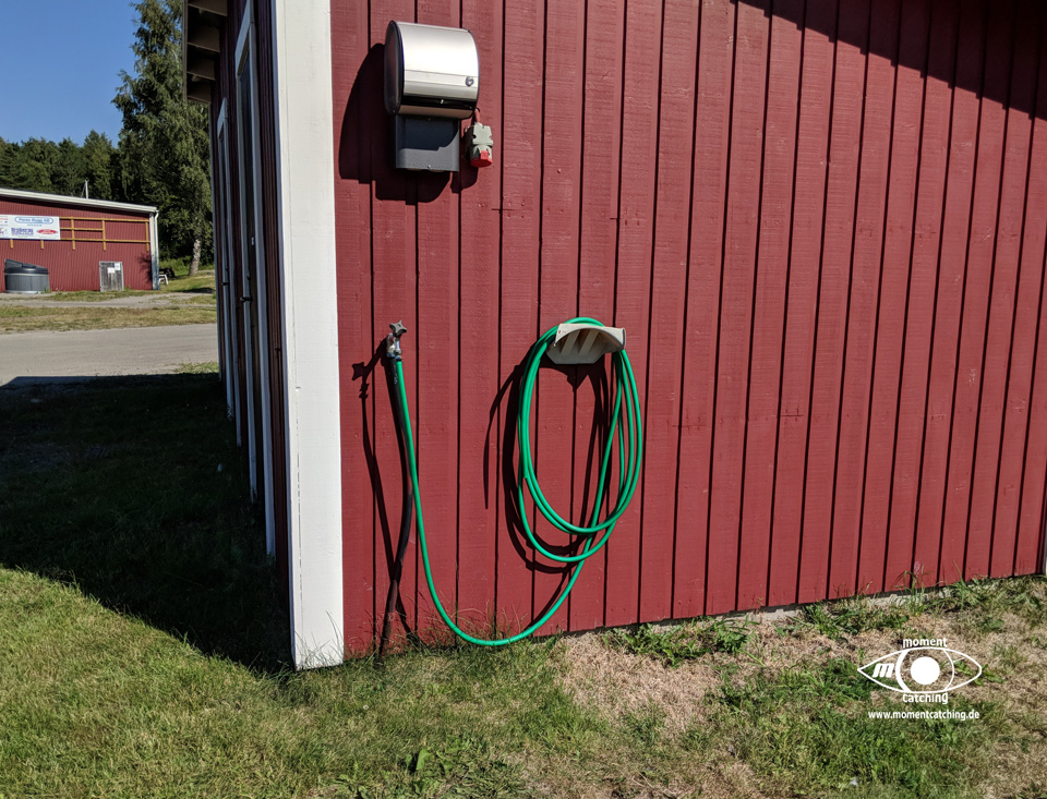 - Für jeden Stellplatz gibt es einen Stromanschluß. In jedem Bereich ist auch ein Wasseranschluss.