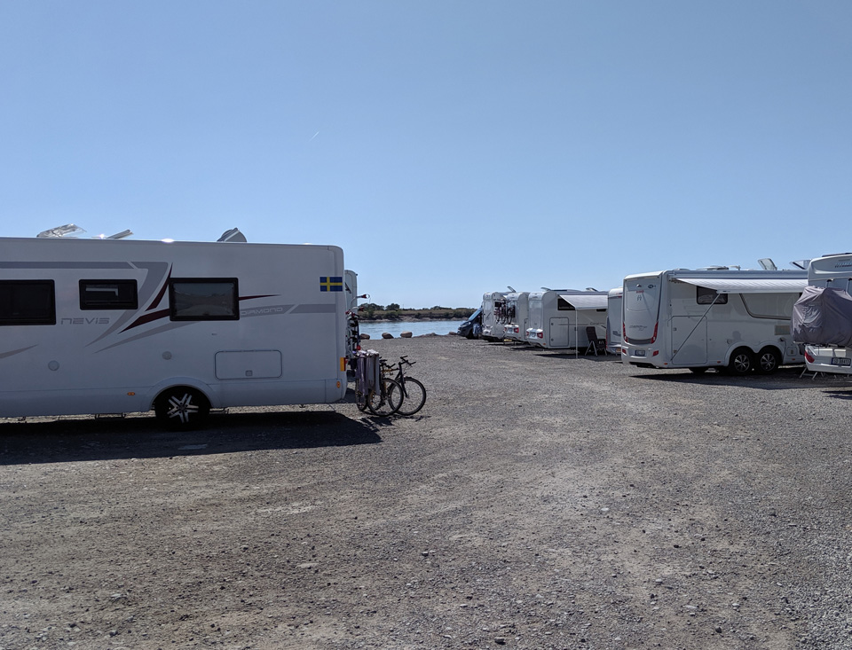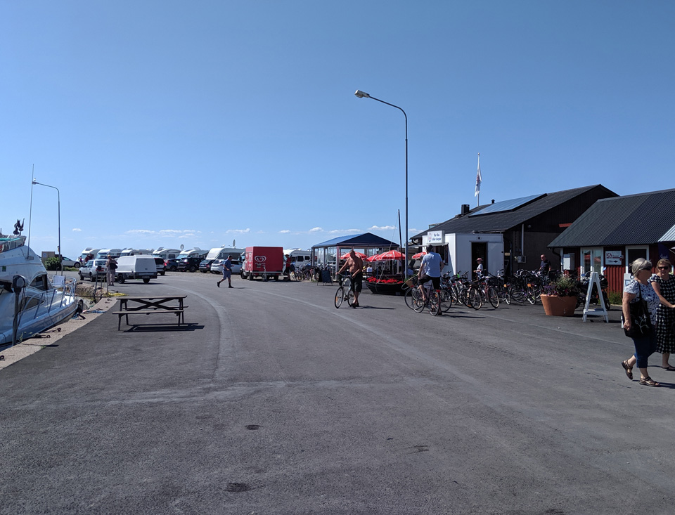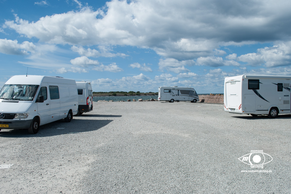 Auf Öland fahren wir besonders gerne mit dem Rad, es gibt kaum Höhenunterschiede, die Straßen sind nur gering befahren oder es gibt gut ausgebaute Radwege und wir lieben die Landschaft. Also war heute auch klar, wir machen wieder eine Radtour. Ich habe uns eine Rundtour zur Ostküste ausgesucht. In dem kleinen Ort Wikegards gibt es einen Campingplatz direkt an der Küste. Da wir nochmal auf Öland umsetzen wollen, lag es nahe, sich diesen Platz anzusehen. Dabei stand sowieso im Vordergrund, der Weg ist das Ziel. Wir haben unterwegs diese schöne Landschaft genossen. Der Campingplatz hat uns gar nicht gefallen. Nur einige wenige Plätze sind wirklich in Ufernähe und dort stand alles kunterbunt durcheinander. Die Stromanschlüsse waren sehr abenteuerlich und es gibt viel zu wenige.