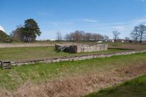 Zur Seeseite hin stand der Wall auf sechs großen Lastkähnen, die man vorher als Fundament dort versenkt hatte. Außerhalb des äußeren Wassergrabens befand sich eine als Wellenbrecher zum Schutz gegen Sturm und Hochwasser angelegte Steinbarriere.