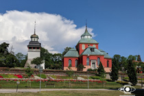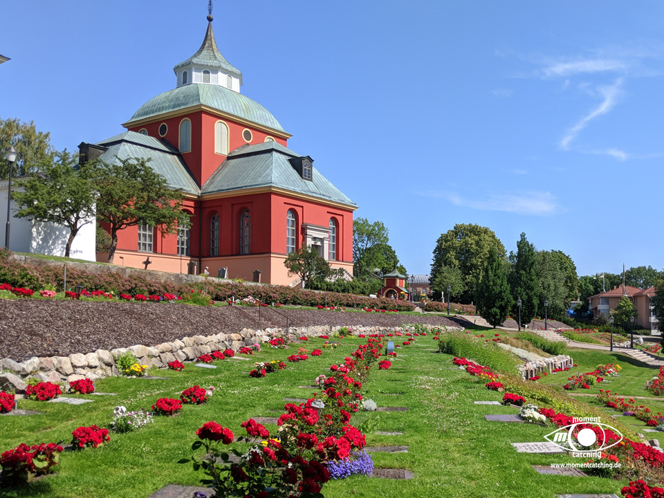 Die barocke rote Kirche ist eine zentrale Kirche mit Kreuzarmen und Türmen in der Mitte und wurde vom Architekten Nikodemus Tessin dy entworfen . Der östliche Kreuzarm hat sich zu einem polygonalen Kreuz entwickelt. Die Glasfenster wurden 1890 nach Zeichnungen von Heinersdorff in Berlin hergestellt . Die Kirche hat 600 Sitzplätze einschließlich der drei Stände.