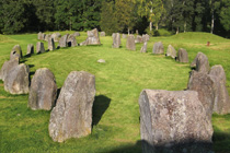 Anundshög (auch unter Badelunda bekannt) mit seinen Hügelgräbern, Schiffssetzungen, Steinsetzungen, und dem Runenstein gehört unter den Gräberfeldern der Wikingerzeit zu den größten, bedeutendsten und ist, was Denkmälertypen anbelangt, das mannigfaltigste. Der Anundshög hat 64–68 m Durchmesser und ist etwa 9,0 m hoch. Neben ihm wirken die anderen 10 Grabhügel bescheiden, obwohl einige von beachtlicher Größe sind. Viele haben den typischen Krater der Wikingerhügel in der Kuppe. Der Hügel soll das Grab des legendären Königs Bröt-Anund bergen, wahrscheinlich ist diese Zuschreibung und die Benennung des Hügels aber auf die Erwähnung des Namens Anund auf einem Runenstein aus dem 11. Jahrhundert am Fuße des Hügels zurückzuführen. Als Bröt-Anunds Grab wird ebenso ein Hünenbett östlich von Vinslöv in Schonen bezeichnet. Zwei große Schiffssetzungen, mit Längen von 54 und 51 Metern liegen in Kiellinie auf den Anundshög ausgerichtet. Sie bestehen aus jeweils rund zwei Dutzend teilweise übermannshohen Findlingen. Das zugehörige Grab liegt unter dem relativ kleinen Maststein, in der Mitte des Schiffes. Das Längen-Breitenverhältnis der Schiffe entspricht jenen Proportionen, wie sie für die Originalschiffe der Wikinger ermittelt werden konnten. Neben den beiden großen finden sich seitab noch drei kleinere, beschädigte Schiffssetzungen. Unter den Steinsetzungen fällt eine schnurgerade Reihe von 14 weit gesetzten Menhiren bzw. Bautasteinen auf, mit einem Runenstein im Zentrum. Die Reihe ist der heute noch erhaltene Rest eines imposanten Straßenmonuments aus der Wikingerzeit, einer sogenannten „Runensteinbrücke“. Das Areal des Anundshög diente bis ins 13. Jahrhundert als Thingplatz. Homepage mit Öffnungszeiten und Eintrittsinformationen. |