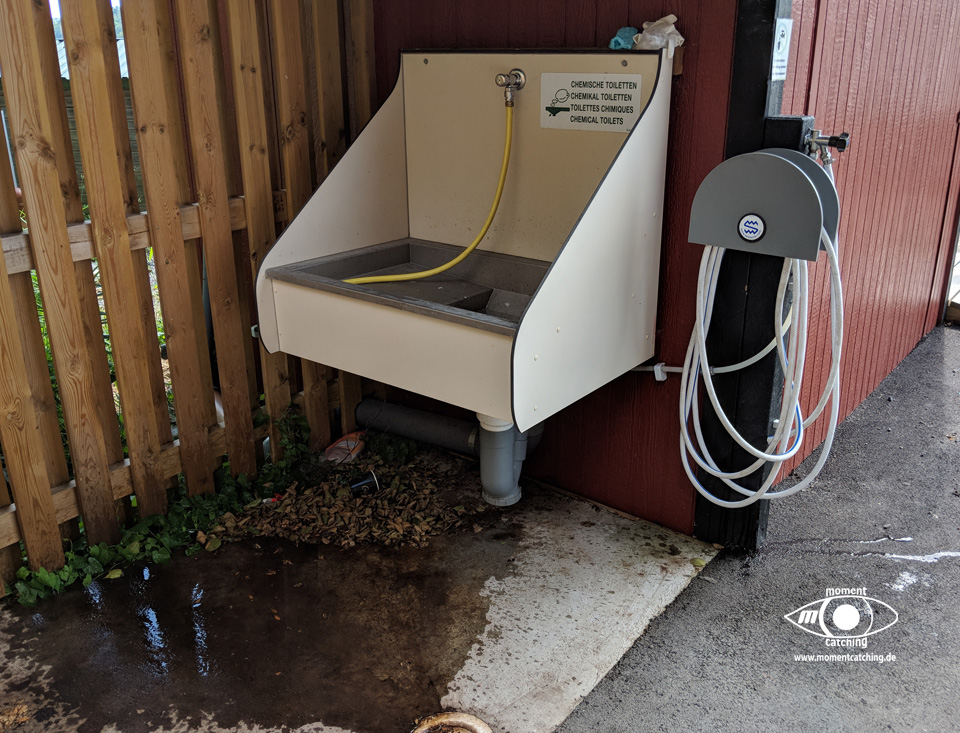 - Im hinteren Bereich befindet sich auch die Fäkalienentsorgung und der Bodeneinlass zur Grauwasserentsorgung.