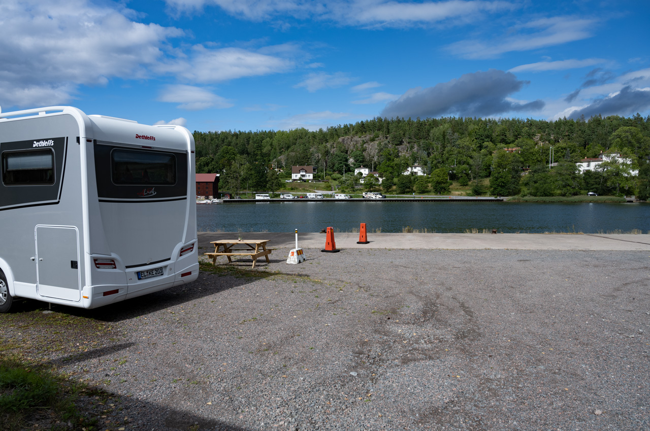 - vom 30. bis 31.07.2021: Wir sind von der Fähre Oskarshamn/Gotland kommend hier gegen 07:00 Uhr eingetroffen. Wir haben uns gerade in einem letzten freien Platz hineingequält. Unmittelbar nach dem Einparken, fing es an zu regnen.