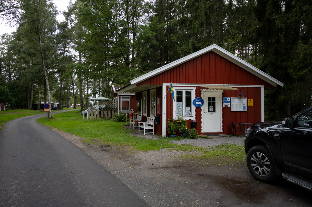 - Das Stellplatzgelände befindet sich in einem Waldbereich am See Vidöstern. An der Zufahrt zu dem Gelände gibt es ein Rezeptionsgebäude, was aber nur stundenweise besetzt ist.