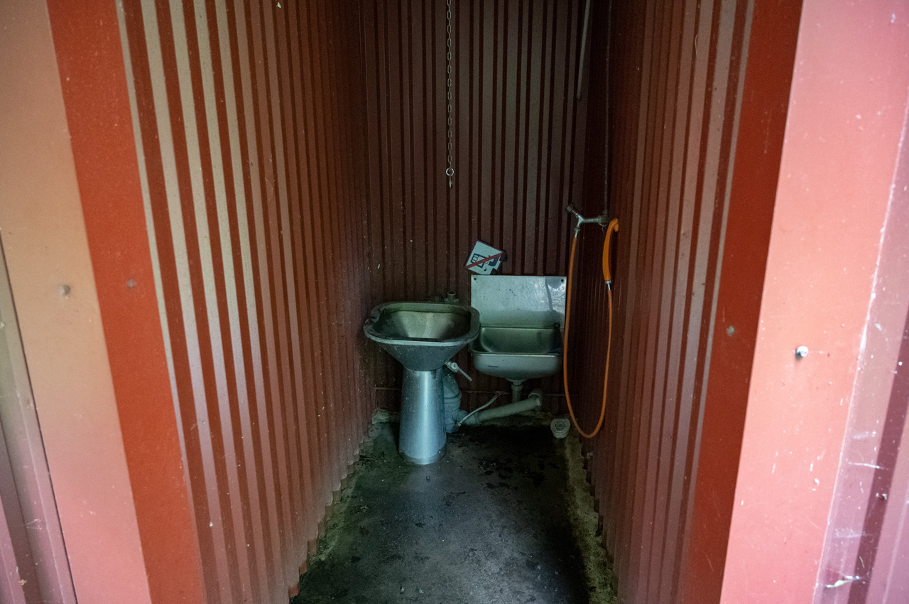 - Die Fäkalienentsorgung erfolgt über ein Becken in einer Raumnische im unteren Sanitärgebäude.