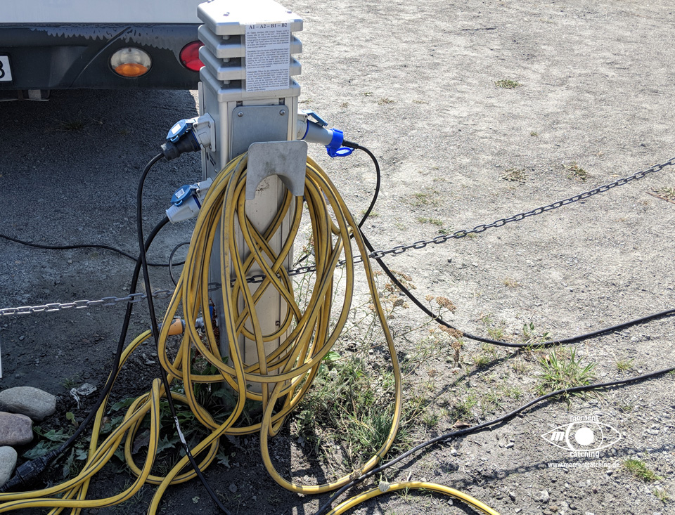 - Die Stromanschlüsse sind in CEE-Ausstattung und an jeder Elektrosäule befindet sich auch ein Wasseranschluss. Elektrosäulen stehen nur für die Reihe A und B zur Verfügung.